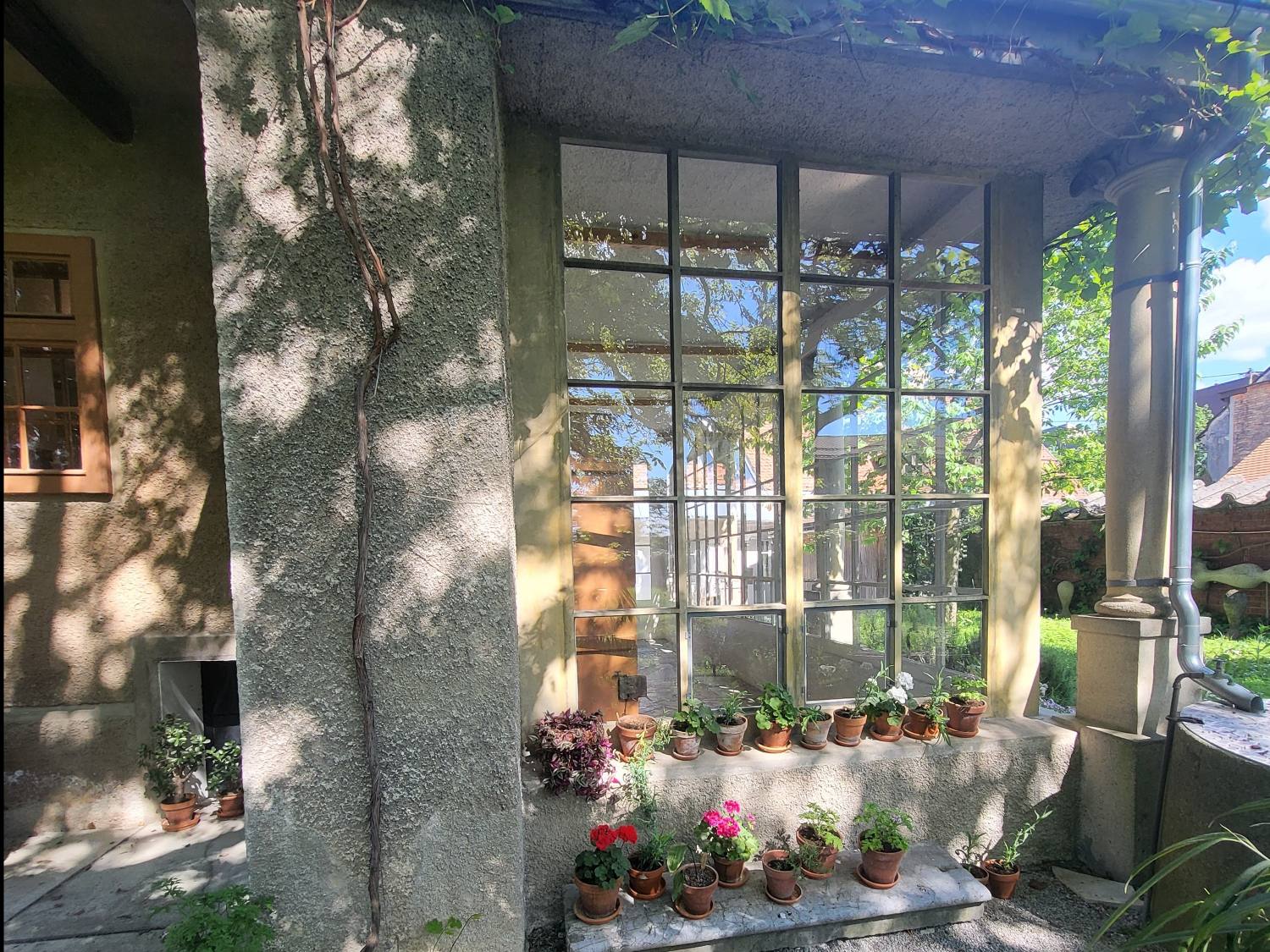 Skozi leta je zgradil nekaj prizidkov: v letih 1923–1925 je na zahodni strani dozidal valjasti prizidek, po dokupu sosednje hiše z velikim vrtom leta 1928 pa na južni strani še zimski vrt. Svojo risalnico je načrtoval v večjem okroglem prostoru v nadstropju stolpa, kjer so velika okna s pogledom na vrt. V sobi je poleg risalne mize in domiselno in funkcionalno izdelanih omar tudi postelja, v sosednjem prostoru pa kopalnica. Za sprejem obiskovalcev je uporabljal zelo skromen kabinet. V pritličju starejšega dela je kuhinja z jedilnico ter manjša delovna soba. V prizidanem zimskem vrtu je Plečnik prezimoval svoje rastline.
