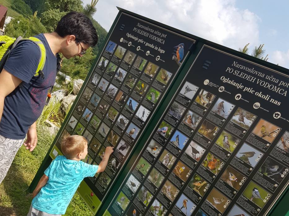 Naravoslovna učna pot Po sledeh vodomca, je odlično speljana čez različne terene. Vodomec je majhen ptič kovinsko modre barve, ki ima za svojo glavo kar nekoliko prevelik kljun. Vendar pa mu ta omogoča, da lahko brez težav ujame ribo. Zato mu pravimo kar super ribič med pticami.