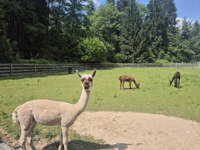 Na prvi pogled so alpake zelo plašne živali, a hitro ugotoviš, da so tudi izjemno radovedne in prikupne. Zelo lepo so nas sprejele in se nam pustile božati in hraniti. Na ogledu smo spoznali tudi njihove značilnosti in posebnosti. So zelo čiste živali, brez vonja. So terapevtsko mirne in ob njih se bodo umirili tudi najbolj živahni otroci.