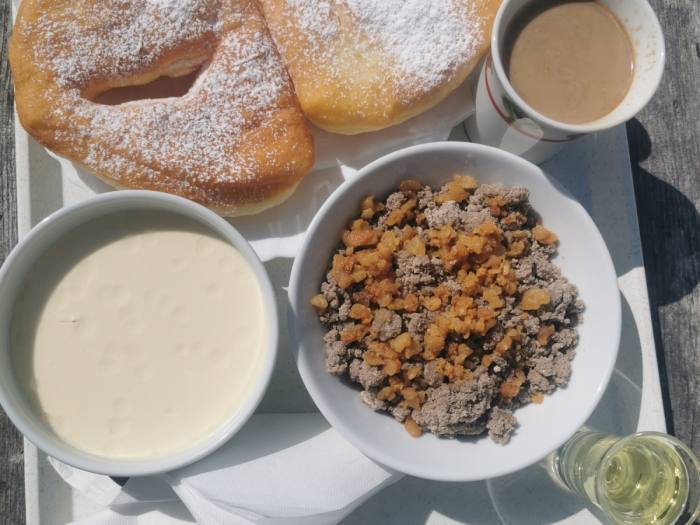 Krekova koča je znana po prijaznosti oskrbnikov in dobri hrani. NUJNO morate preizkusiti njihove slastne flancate. So ogromni, puhasti, ravno prav sladki in se kar stojijo v ustih. Njamsi!