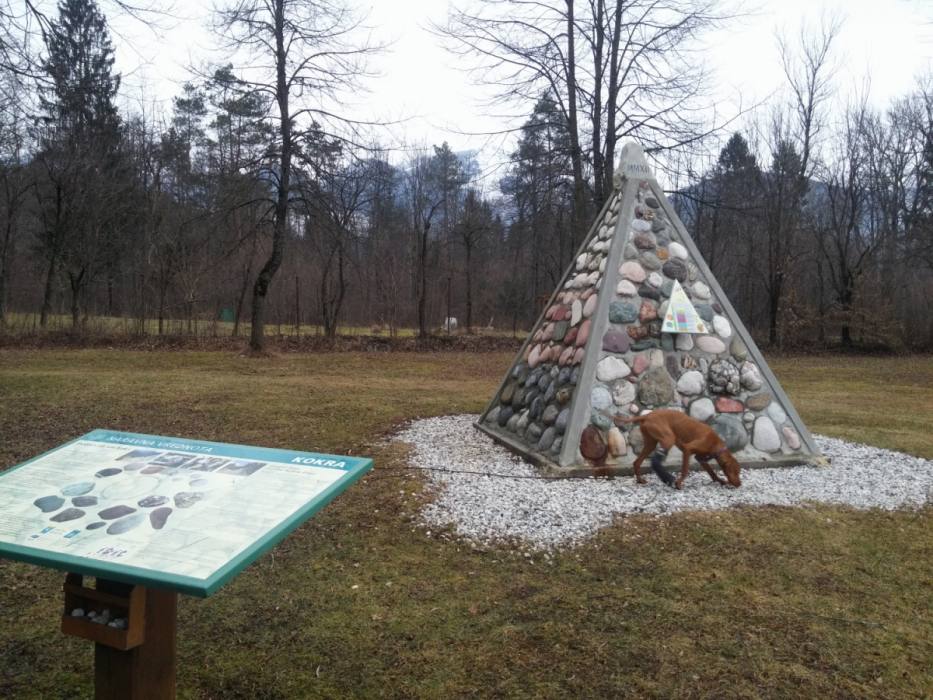 S strokovno pomočjo pa je zrasla tudi tri metre visoka GEOLOŠKA PIRAMIDA, v katero so vgradili barvite kamne nepravilnih oblik s prodišč v bližini Visokega. Prav s štiristrano piramido se da precej bolje razumeti geološko pestrost kamnov, ki jih reka prinaša, brusi in odlaga na svoji poti . Najbolj tipične smo prerezali in jih spolirali, da se vidi, kako so sestavljeni, nam je ob piramidi blizu športnega parka v Rapi razložil profesor.