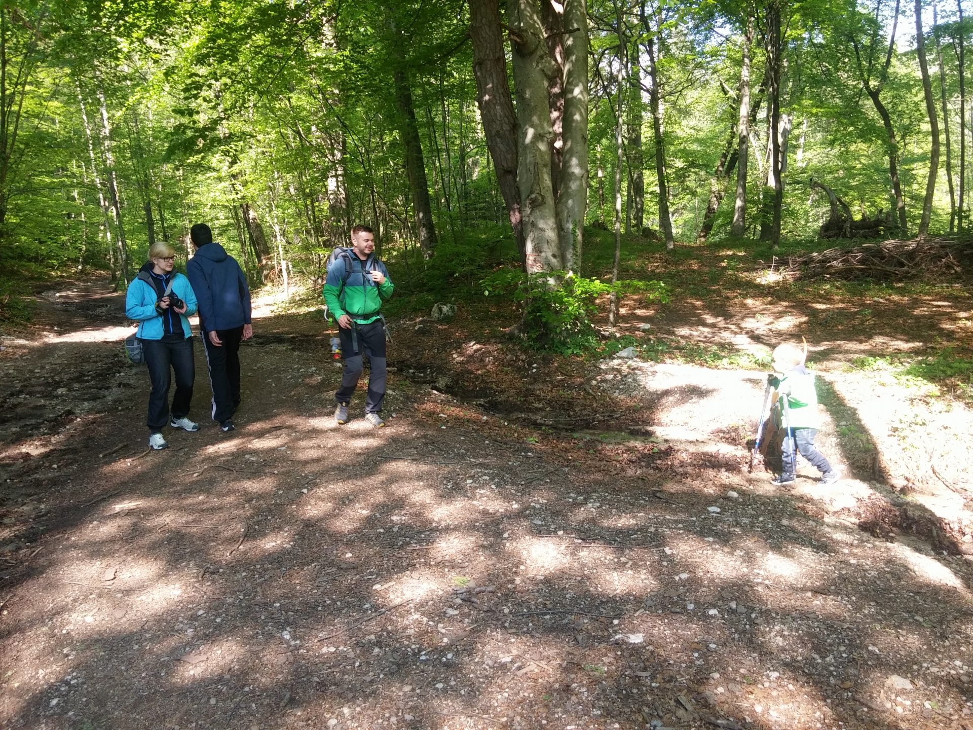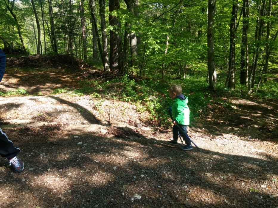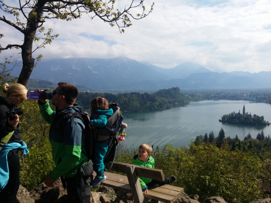 Na praznični dan, ko je Bled poln turistov, mi pa smo si zaželeli Blejskega jezera, smo se odpravili na Ojstrico nad Blejskim jezerom, odkoder je prelep razgled na jezero in okolico. Ojstrica in mala Osojnica sta hriba, ki se dvigata nad zahodno obalo Blejskega jezera. Nagrajeni bomo z izredno lepim razgledom na Blejsko jezero, otok, grad in karavanške gore v ozadju. Višinske razlike je približno190 m. Vzpon je primeren tudi za mlajše otroke. Avto smo pustili na parkirišču v Zaki (lahko ga pustite tudi tik pod Ojstrico-je označba iz ceste, prostor le za dva avtomobila) in se odpravili po sprva kar strmi poti. Že po 50 metrih pa postane pot bolj položna. Sam čas vzpona je sicer odvisen od hitrosti hoje, a mi smo s 3 letnikom prišli na vrh v slabi uri. Odrasel pohodnik bi do vrha rabil približno 20 min.