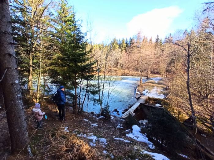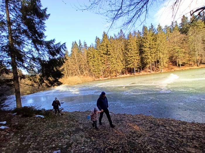 Dostop iz Strahinja: Dostop iz Nakla je možen od gostišča Bolero, nato nad avtocesto, mimo Pump Tracka do Strahinja, usmerite se proti gostilni Bovavc in se držite desno, vse do konca vasi, do gozda, kjer smo parkirali ob gozdi poti. Od koder je do ribnikov le okrog 600m. Glej naš gpx zemljevid. Z majhno 4 letnico smo seveda izbrali najkrajšo pot.
