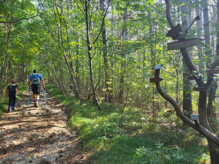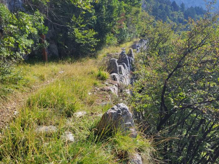 Z vrha se spustimo nazaj do razpotja, kjer nadaljujemo vzpon v smeri Čavna in Sekulaka po stari Napoleonovi poti. Ta nas pripelje do strmih skalnih pečin Visokega zidu. Široka pot naprej vodi čez umetno izklesano razgledno polico (nevarnost padajočega kamenja). Nadaljujemo rahlo desno v smeri Čavna in Sekulaka po nekoliko ožji poti, ki nas sprva skozi nekaj manjših jas pripelje do bolj strmega dela. Ta del bo preizkušnja za naše najmlajše saj se res hitro zelo vzpemo. Tukaj je razpotje, kjer se usmerimo desno in po 5 minutah hoje po grebenu, prispemo do razgledne točke Sekulak. Od cerkvice do razgledne točke smo potrebovali še debelo uro.