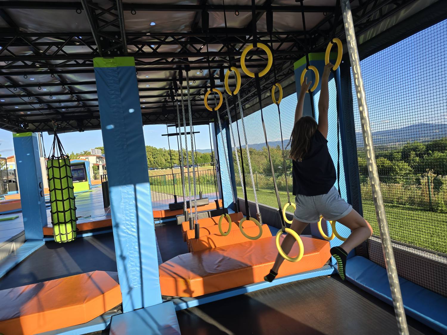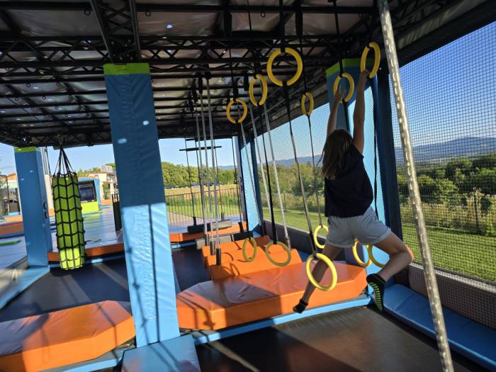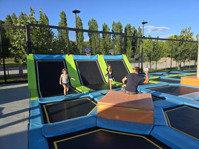 Vsi družinski člani boste lahko uživali v adrenalinski zabavi v trampolinskem parku Flypark, ki ponuja več kot 680 m2 skakalnih površin. Park zajema več različnih atrakcij, kot so: prosto skakanje, interaktivne video igre, Airbag, Ninja park, Parkour poligon, Battle beam, tobogan in High performance trampolin. Park je primeren za različne starosti. Naša najmlajša članica Olja se je izkazala, da ima najboljšo skakalno kondicijo.