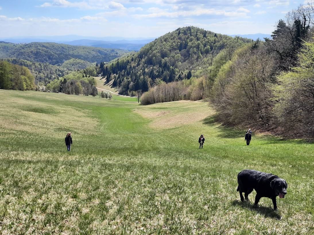 Z vrha se lahko v nekaj minutah spustimo do Kmečkega turizma Obolno.