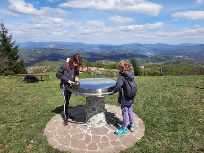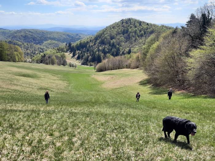 Nadaljujemo lahko skozi gozd, kjer poteka markirana, a slabše sledljiva pot ali pa ob levem robu vse bolj razglednega pobočja. Poti sledimo v desno in se ob lepih pogledih na okoliško hribovje v nekaj minutah sprehodimo na razgleden vrh.