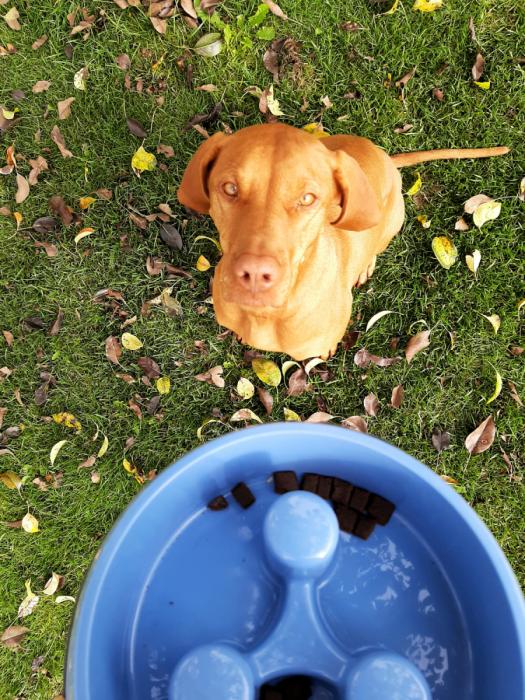 Ker pa sem pri hranjenju tako hitra, kot na sprehodih, imam doma prav posebno skledico Trixie Napf Slow Feed, ki poskrbi, da moram obrok pojesti lepo počasi. Počasiiiii. Je pa dejstvo, da je čas relativna stvar. Kajne?