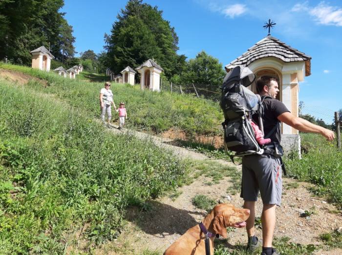 Na družinskih izletih je naš avto založen s tako ali drugačno opremo. Preden štartamo z dvorišča se navadno vsi preštejemo, da nismo slučajno koga pozabili. Nahbtniki, otroški voziček, otroška nosilka, gojzarčki in še in še obvezne opreme za izlet. Vozim se v prtljažniku, ker je tu najbolj varno in včasih za daljšo pot dobim tudi tableto proti slabosti.